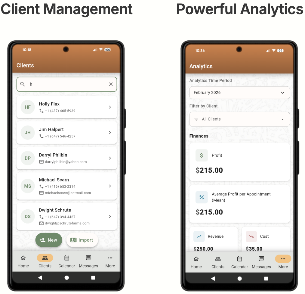 Built for a business run by You, from your Phone. PocketClients has all the features you need, without the complexity for larger teams.