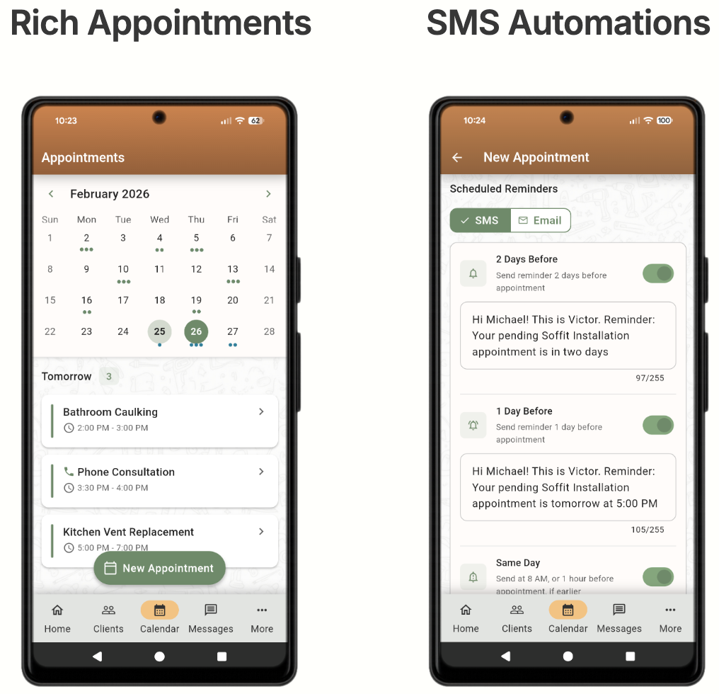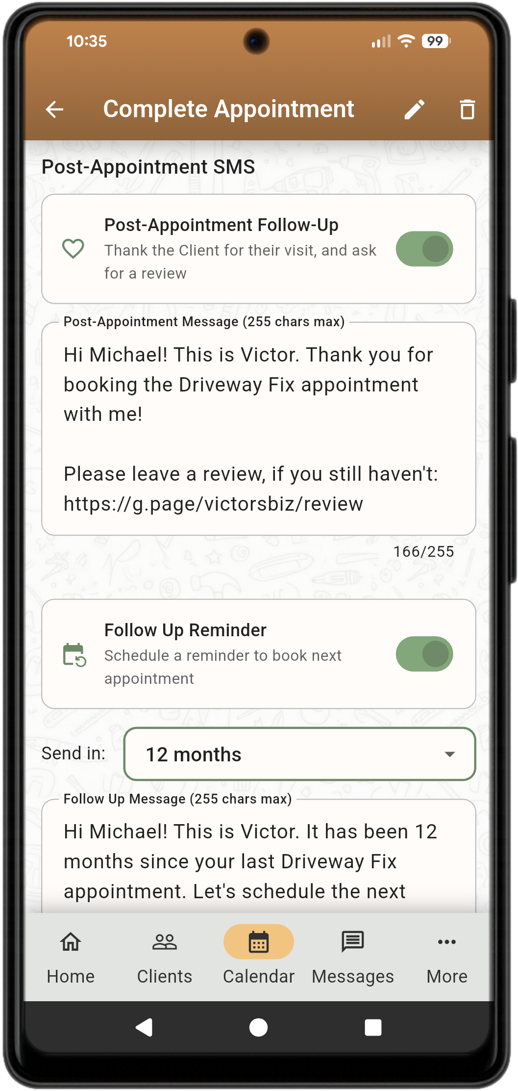 Schedule reminders, follow ups, send On the Way and Running Late messages