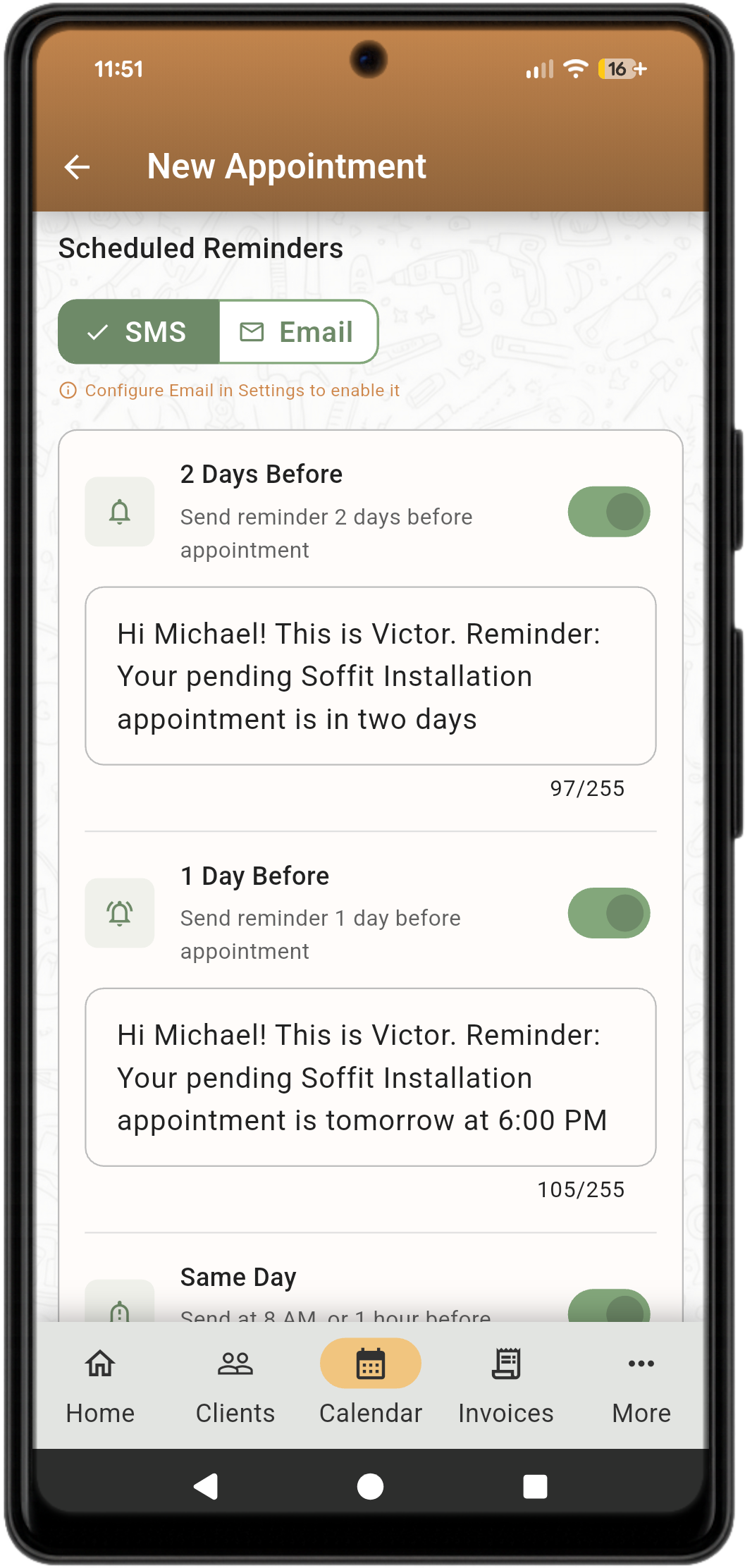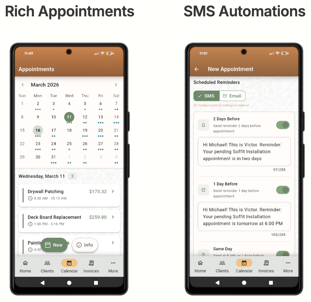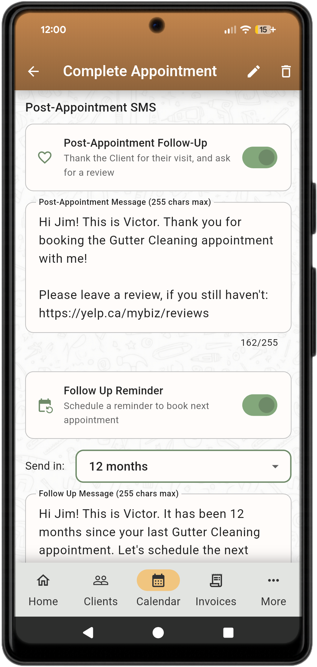 Schedule reminders, follow ups, send On the Way and Running Late messages